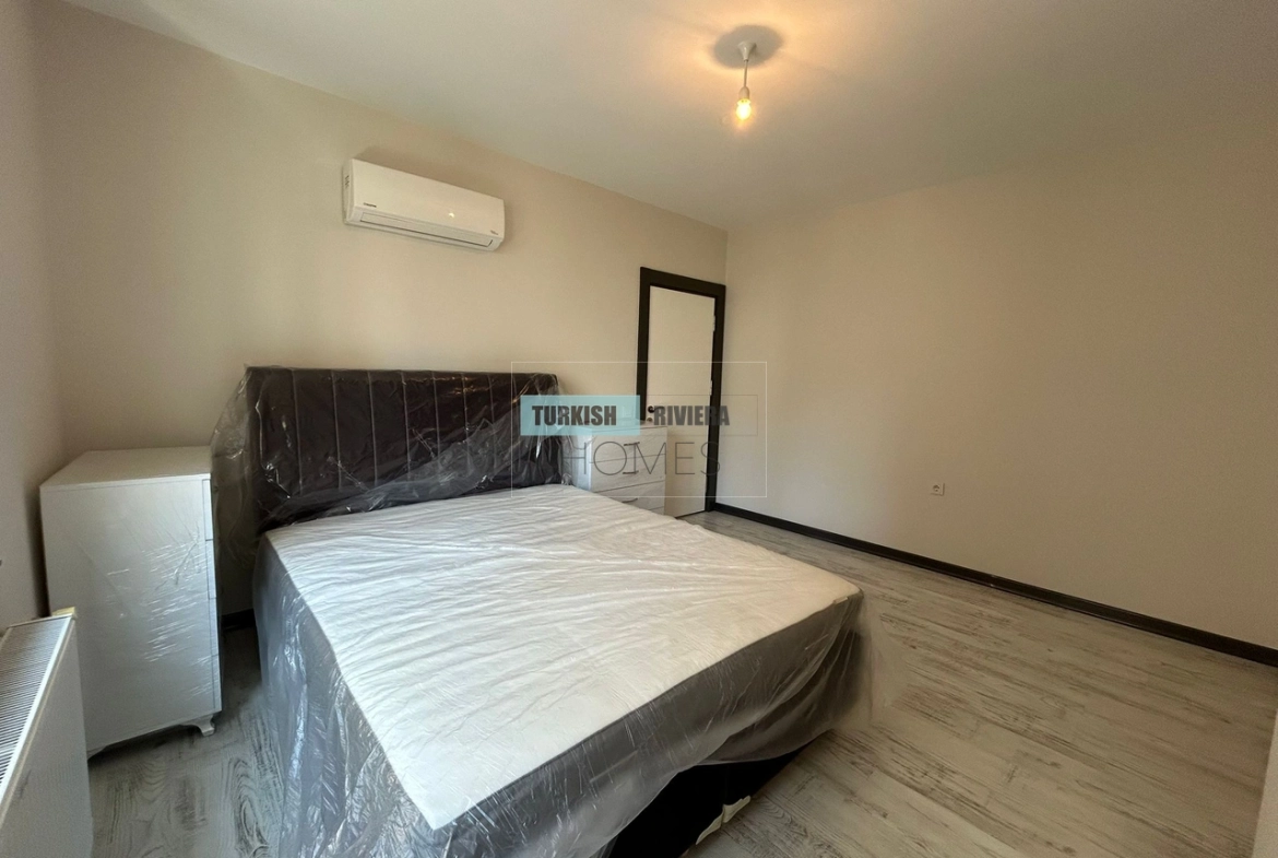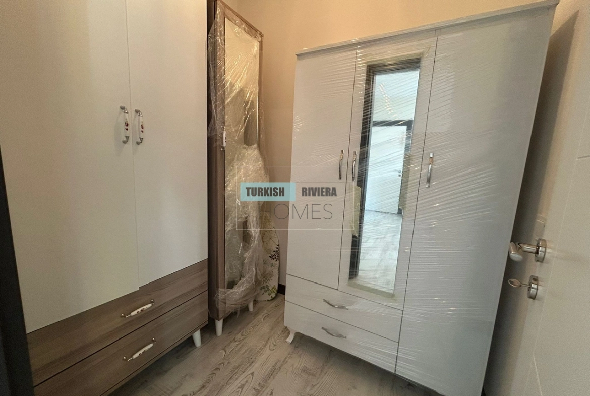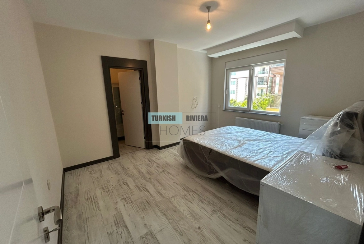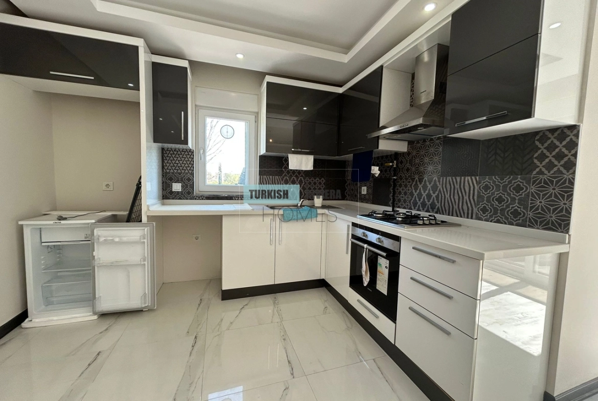 The apartment is also equipped with air conditioning, providing relief from the hot Antalya summers, and a balcony that offers a lovely outdoor space to relax and enjoy the surrounding views. The kitchen is modern and functional, equipped with high-quality appliances and plenty of counter space, making meal preparation a breeze. The bedrooms are spacious and comfortable, with ample storage space for clothing and other belongings.