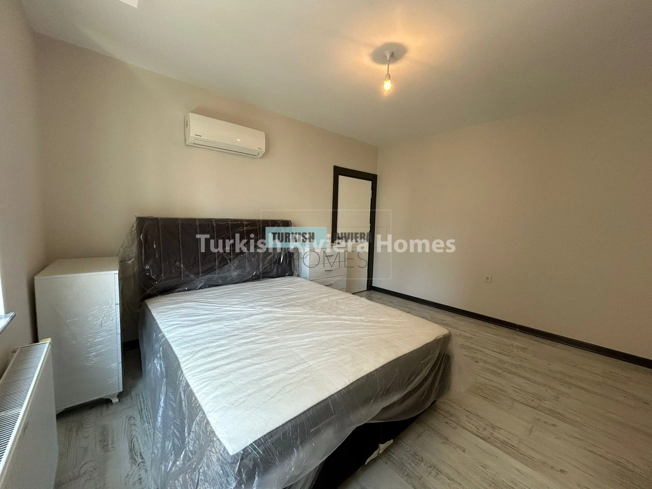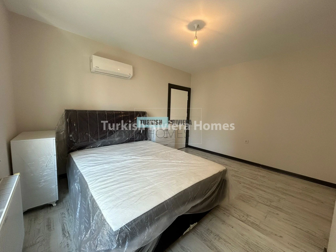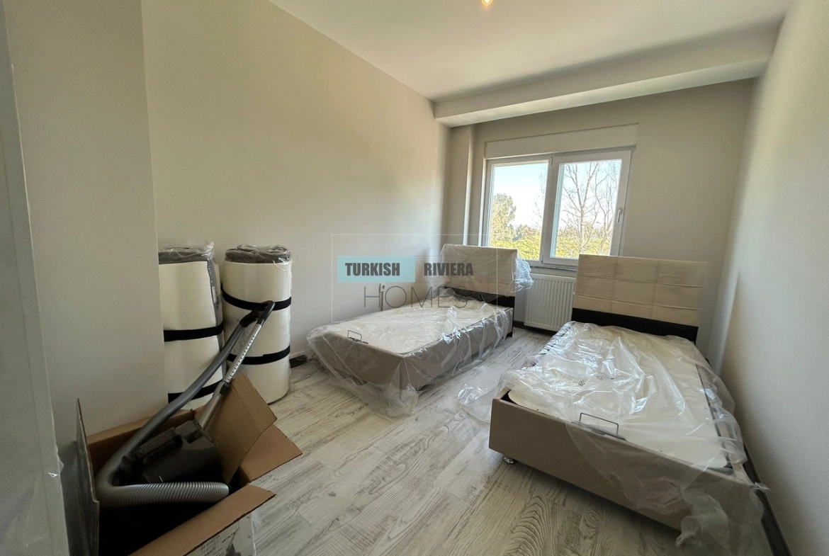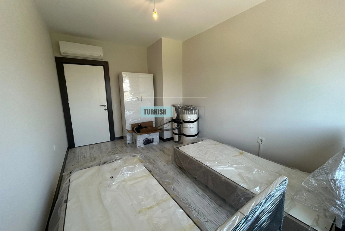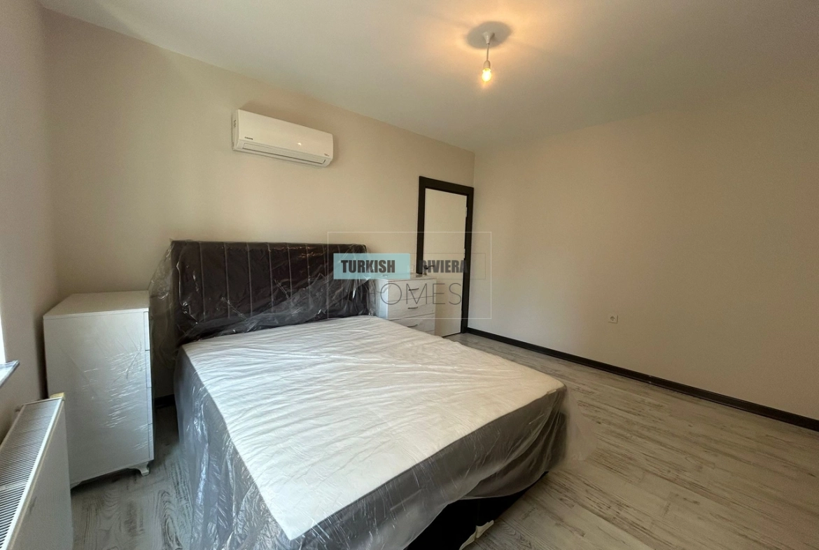 The apartment is also equipped with air conditioning, providing relief from the hot Antalya summers, and a balcony that offers a lovely outdoor space to relax and enjoy the surrounding views. The kitchen is modern and functional, equipped with high-quality appliances and plenty of counter space, making meal preparation a breeze. The bedrooms are spacious and comfortable, with ample storage space for clothing and other belongings.