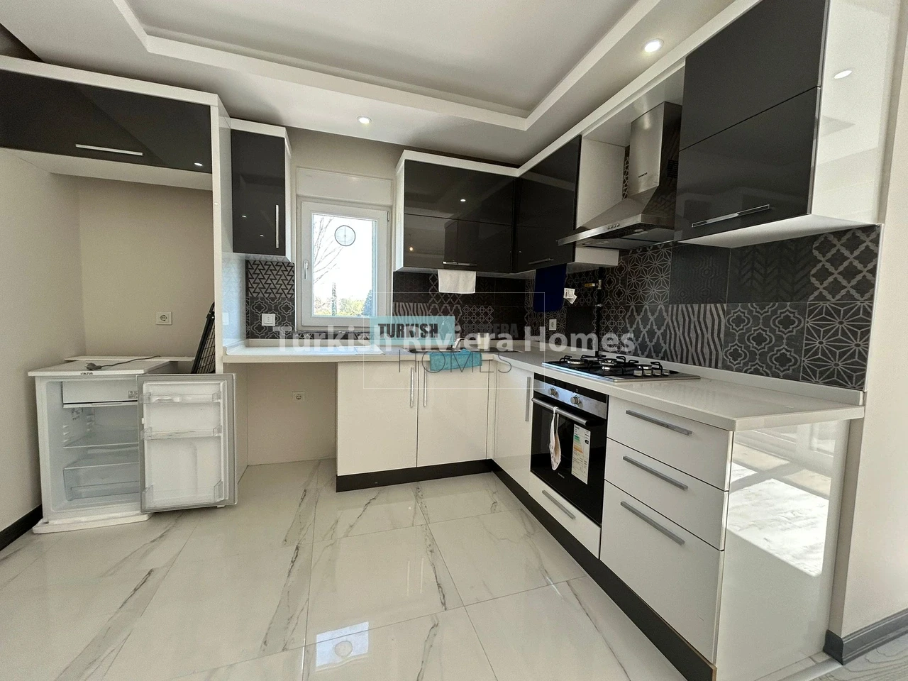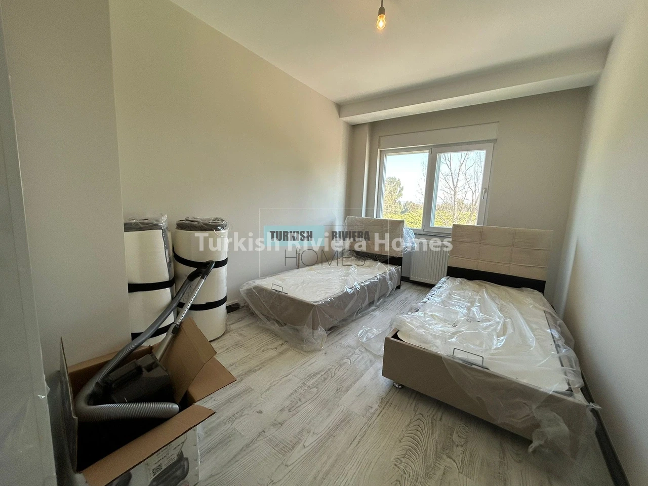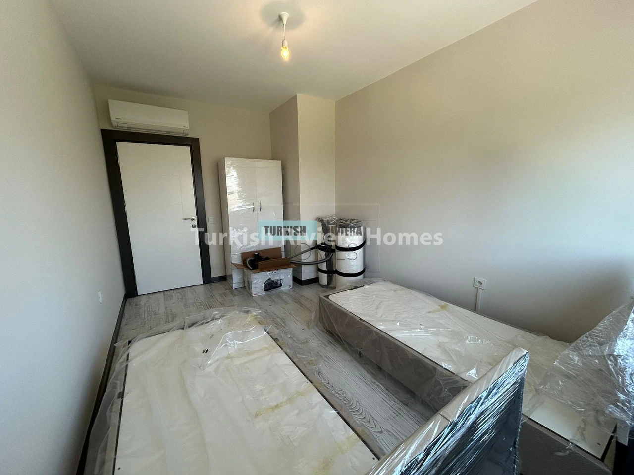 The apartment is also equipped with air conditioning, providing relief from the hot Antalya summers, and a balcony that offers a lovely outdoor space to relax and enjoy the surrounding views. The kitchen is modern and functional, equipped with high-quality appliances and plenty of counter space, making meal preparation a breeze. The bedrooms are spacious and comfortable, with ample storage space for clothing and other belongings.