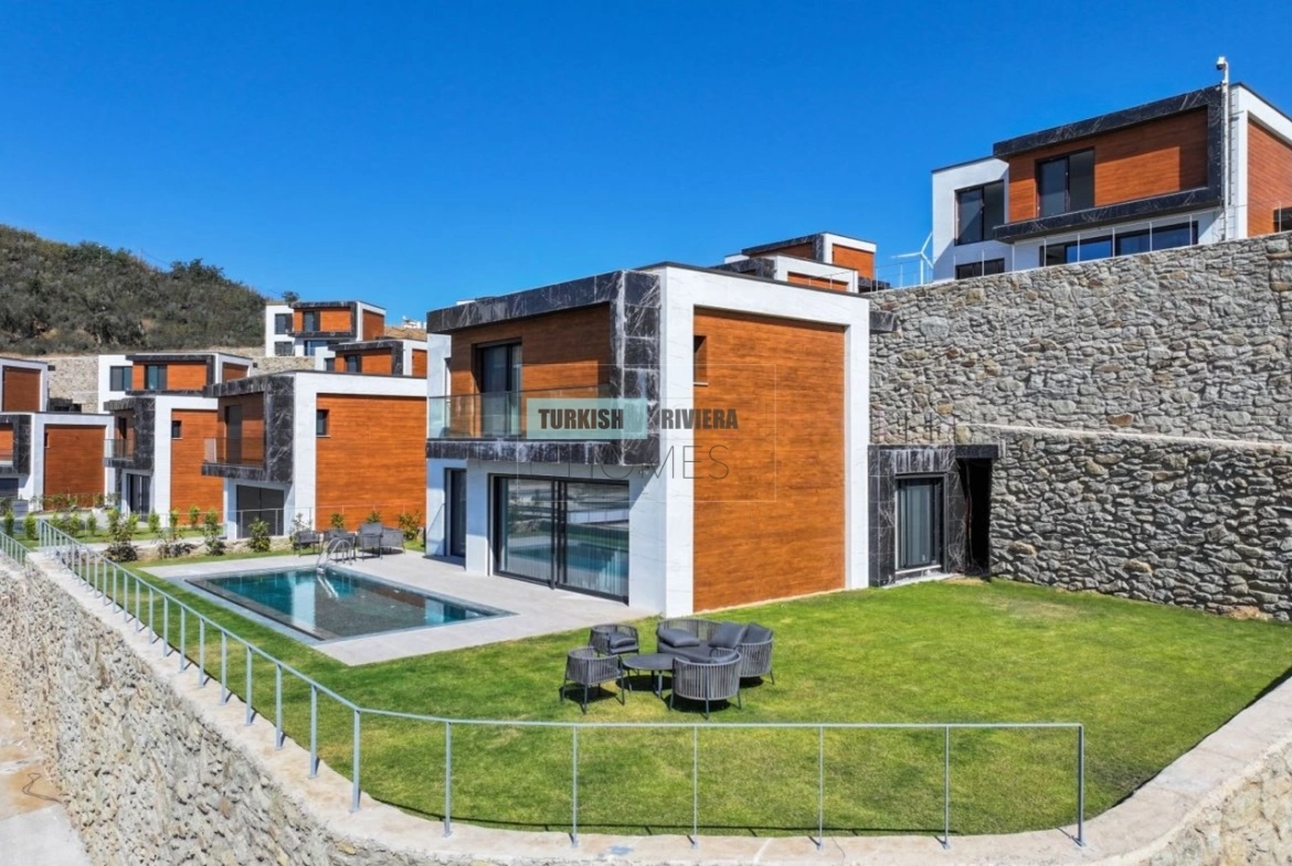 These 4+1 smart villas are located in Yalıkavak, one of the areas people usually ask for first when looking to invest in Bodrum. The project was completed in 2023 and sits inside a private compound with sea views and its own beach access. The villas are modern but not flashy and are designed more for everyday comfort than show. With space inside and private gardens outside, they work well for year round living, not just summer use.