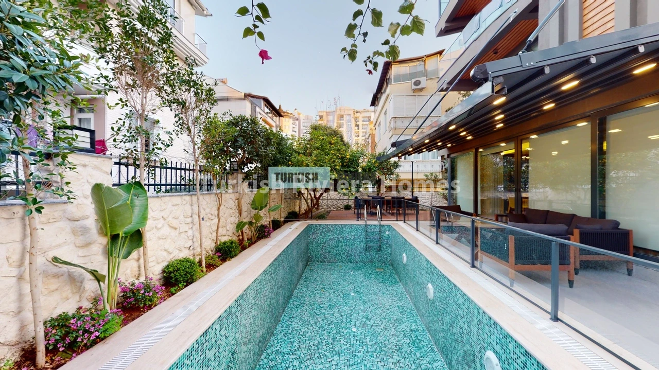 Imagine a home where every morning begins with a walk along the Mediterranean coast, afternoons unfold by your private pool, and evenings end gathered with family in a grand living space that overlooks the glowing palm‑lined streets of Konyaaltı.