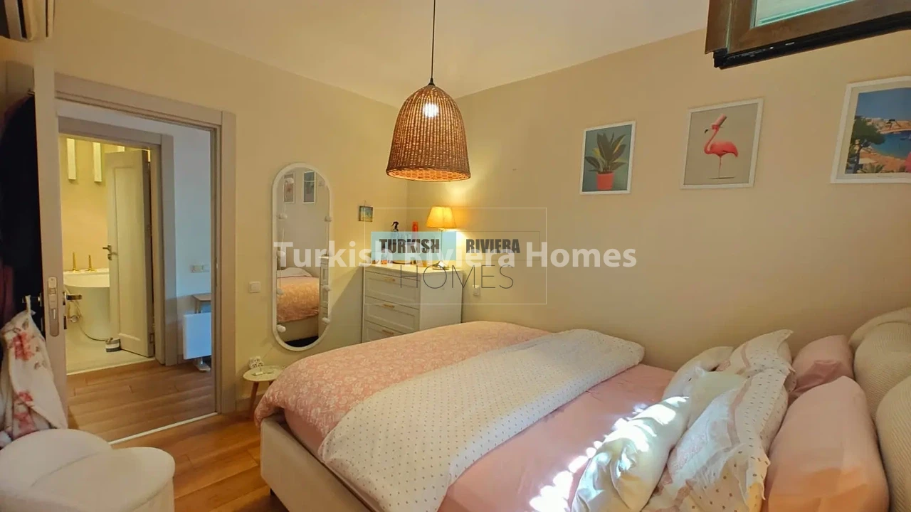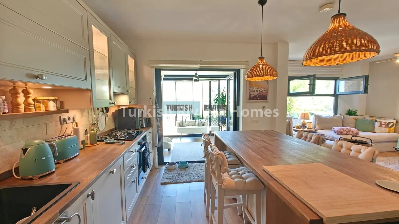 A rare and charming opportunity to own a fully furnished garden floor apartment in one of the Bodrum Peninsula’s most coveted and fashionable addresses — Yalıkavak. Garden floor units of this character are genuinely scarce in Yalıkavak’s property market, offering the unique advantage of direct access to mature, landscaped outdoor space without the premium price tag typically associated with the area. Set within a well-maintained complex with a shared swimming pool, this two-bedroom apartment is move-in ready, ideally suited to a small family seeking a permanent Aegean home, and represents a compelling investment opportunity with strong rental return potential in one of Turkey’s most in-demand coastal resorts.